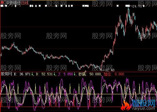 抄底:if(REF(COUNT(k<ref(k,1),5)>=5,1) AND COUNT(K<30,5)>=2 AND COUNT(J<0,3)>0 AND CROSS(J,0),90,50),color00ffff;